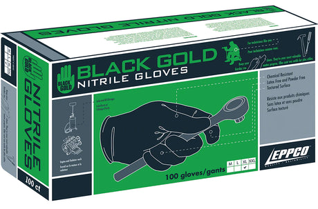 9844 EPPCO BLACK GOLD GLOVE BLACK NITRILE 4mm-Large 10 PER CASE
