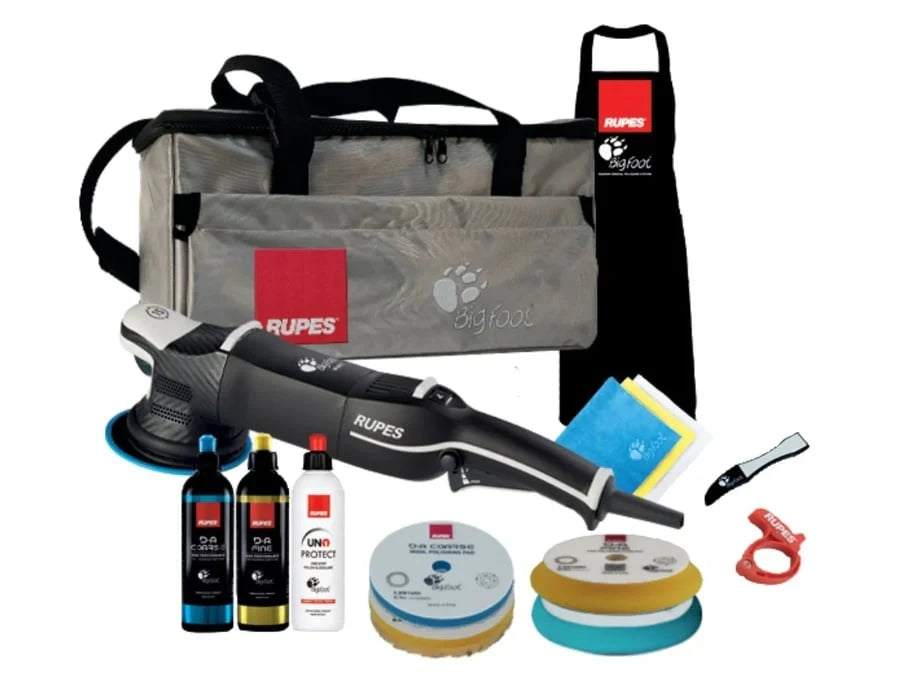 LHR15V + D-A COARSE & D-A FINE compounds + UNO PROTECT + multiple pads (wool/foam/microfiber) + microfiber towels + claw pad + cable clamp + BigFoot tool bag