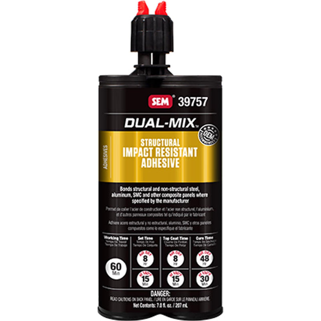 El adhesivo resistente al impacto estructural Dual-Mix™ es un adhesivo de dos componentes a base de epoxi recomendado por los fabricantes de equipos originales (OEM) para unir componentes estructurales y no estructurales donde lo especifique el fabricante del vehículo.