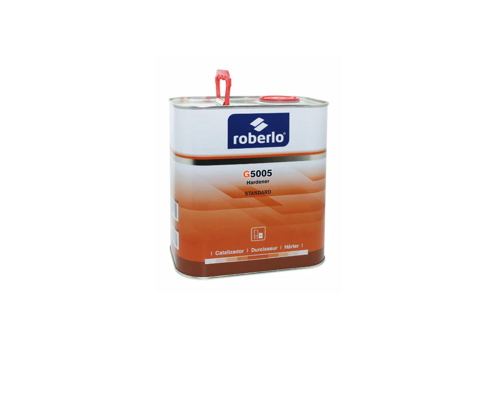 Roberlo G5005 es un endurecedor HS de velocidad estándar formulado para su uso con los sistemas de laca transparente Roberlo Global 5000 y Roberlo Global 6000. Está diseñado para ofrecer un curado uniforme a temperaturas de taller medias .