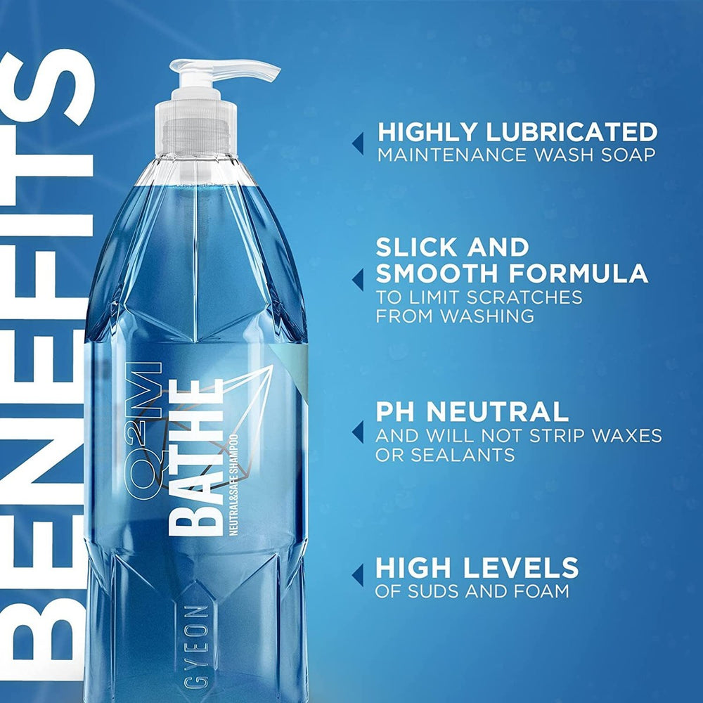 Q² Bathe es una solución premium para el lavado de autos, diseñada para lograr un acabado impecable con facilidad. Su fórmula avanzada combina potentes agentes de limpieza con un toque suave, garantizando que la pintura de su vehículo se mantenga impecable. La principal ventaja de usar Q² Bathe es su capacidad para proporcionar un brillo sin vetas y es seguro para todas las superficies, incluyendo vidrios y molduras.