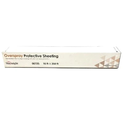 Lámina de plástico de 4,8 m x 107 m para protección contra rociado excesivo. Caja dispensadora. Plástico HDPE con tratamiento corona. La pintura se adhiere a este material resistente pero flexible.