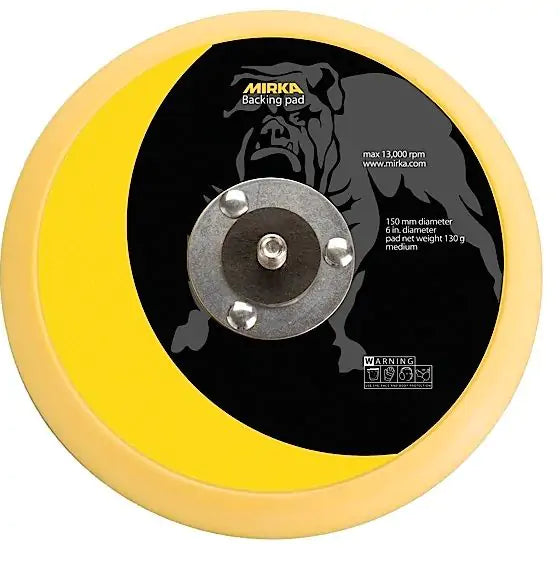 106, Mirka Vinyl Faced Backup Pad, 6 in Diameter 5/16 in x 24 Spindle, Qty 1 This vinyl faced backup pad is a medium density pad. It is 6 inches in diameter with no holes and uses PSA abrasives.