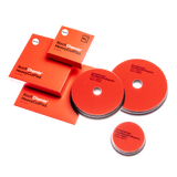 Abrasive sponge for removing strong weathering and deep scratches using the Heavy Cut H9.01. The short height of 23mm creates low torsion forces, very good handling and the highest level of stability. The special density of the foam material enables long-lasting compression hardness during polishing. The optimised reticulation (open cellular structure) and cell count contribute to a high level of abrasiveness and excellent hygiene factors. The milling edge ensures extra flexibility for the pads, enabling them to fit around contours easier. The colourful non-woven material, suitable for polishing, ensures process safety. Compression hardness: 17. Abrasiveness: 9